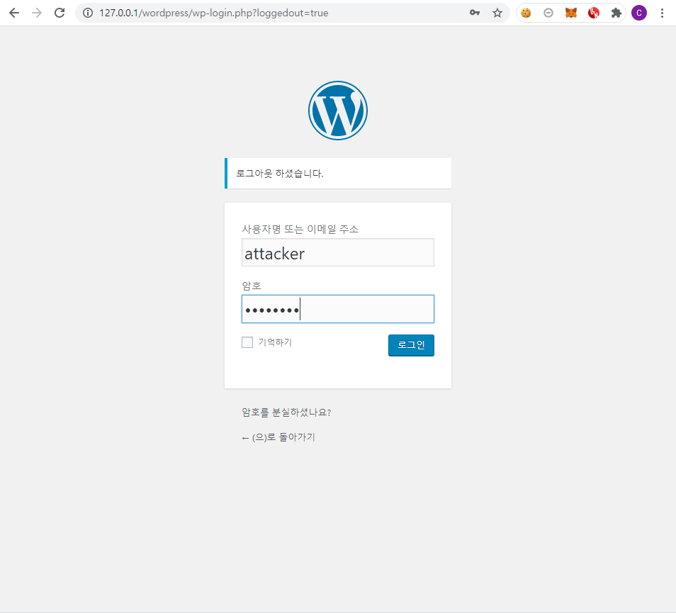 step 2. 사전에 생성해둔 글쓰기 기능만 존재하는 attacker 계정으로 접속