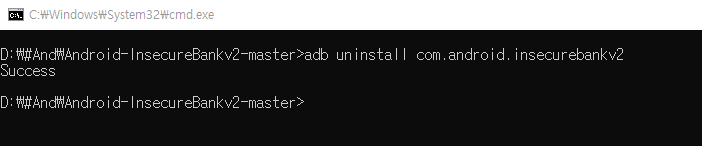 2. Uninstall 명령어 < adb uninstall [설치된 패키지 이름] >