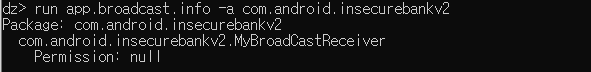 명령어 : < run app.broadcast.info -a [패키지명] >