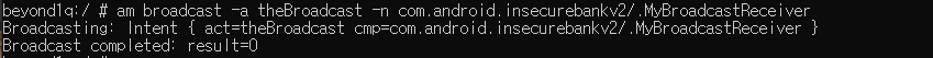 명령어 : < am broadcast -a theBroadcast -n com.android.insecurebankv2/.MyBroadcastReceiver >