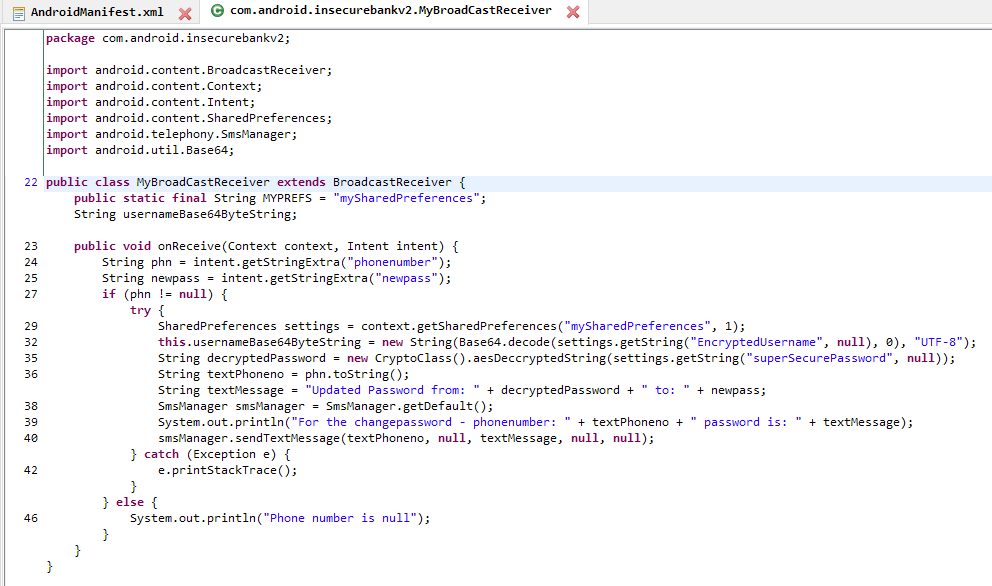 이 과정에서 애플리케이션이 사용자 정의 브로드캐스트 리시버를 사용하거나, Intent-filter에 특정 권한을 명시하지 않는다면 해당 애플리케이션은 다른 애플리케이션에 의해 브로드캐스트가 오-남용 될 수 있습니다.