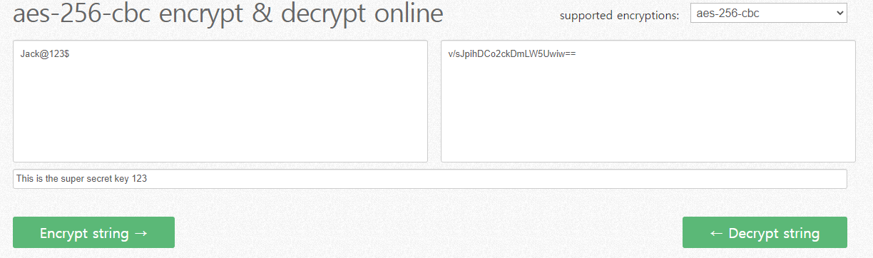 이로 인해 우리는 비밀번호의 값이 "This is the super secret key 123" 이라는 키로 AES 암호화 되었다는 것을 알게되었습니다.