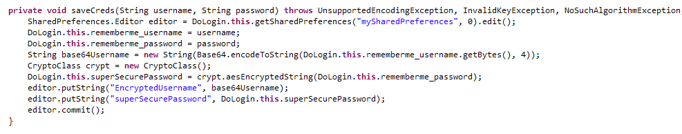 해당 함수는 자동로그인 기능을 사용하기 위해, 입력된 유저ID와 비밀번호를 인코딩하여 파일로 저장하는 코드입니다.