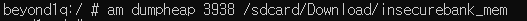 명령어 : < adb shell am dumpheap 3938 /sdcard/Download/insecurebank_mem >