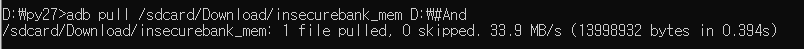 명령어 : < adb pull /sdcard/Download/insecurebank_mem [다운로드경로] >