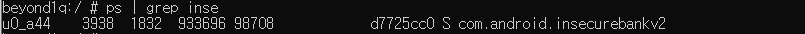 위 명령어로 쉘에 접속해 현재 실행중인(메모리에 올라와있는) 인시큐어뱅크의 프로세스 ID를 알아냅니다.(3938)