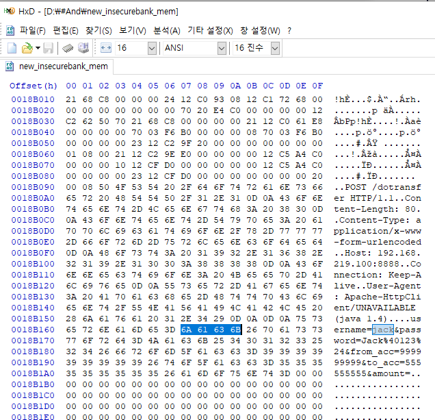 해당 new_insecurebank_mem 파일을 HxD 로 열어 보겠습니다.