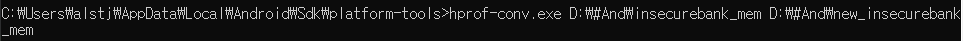 명령어 : < hprof-conv.exe [메모리덤프파일 경로] [새로운 메모리덤프 파일 경로] >