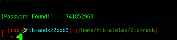 그러나 이 파일을 unzip 하려면 비밀번호가 필요합니다. zip 파일의 비밀번호에 대한 힌트는 따로 없었으니, 크래킹 도구를 이용해 비밀번호를 크랙했습니다.