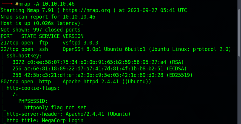 21,22,80/tcp 포트가열려있습니다.
