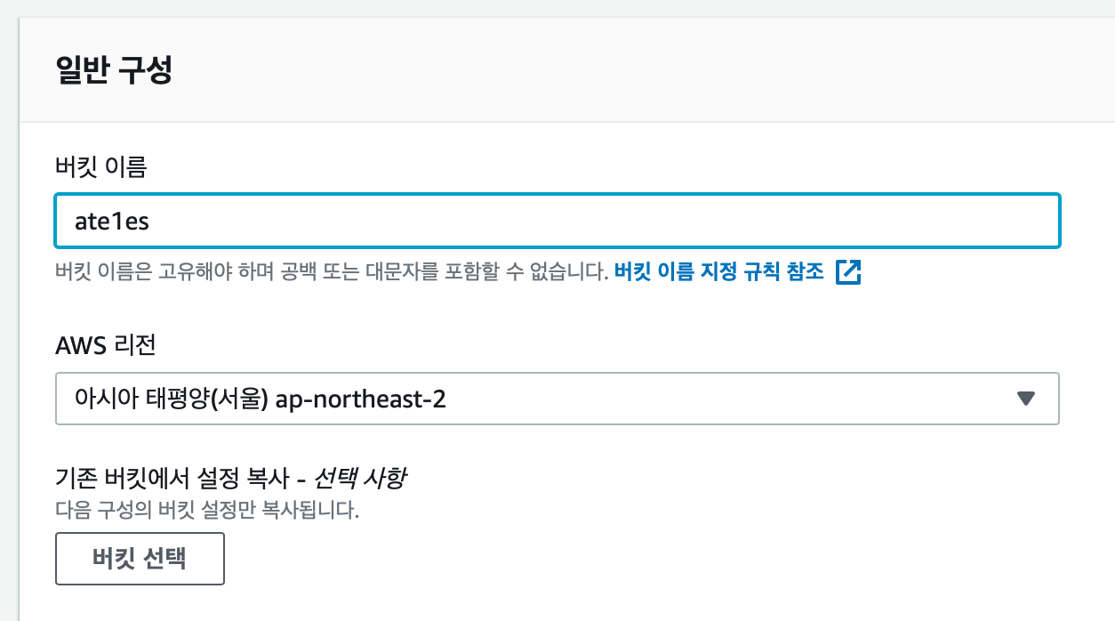 본인이 원하는 버킷 이름을 입력하고, 리전은 당연히 ["아시아 태평양(서울)"]을 선택하고 다음