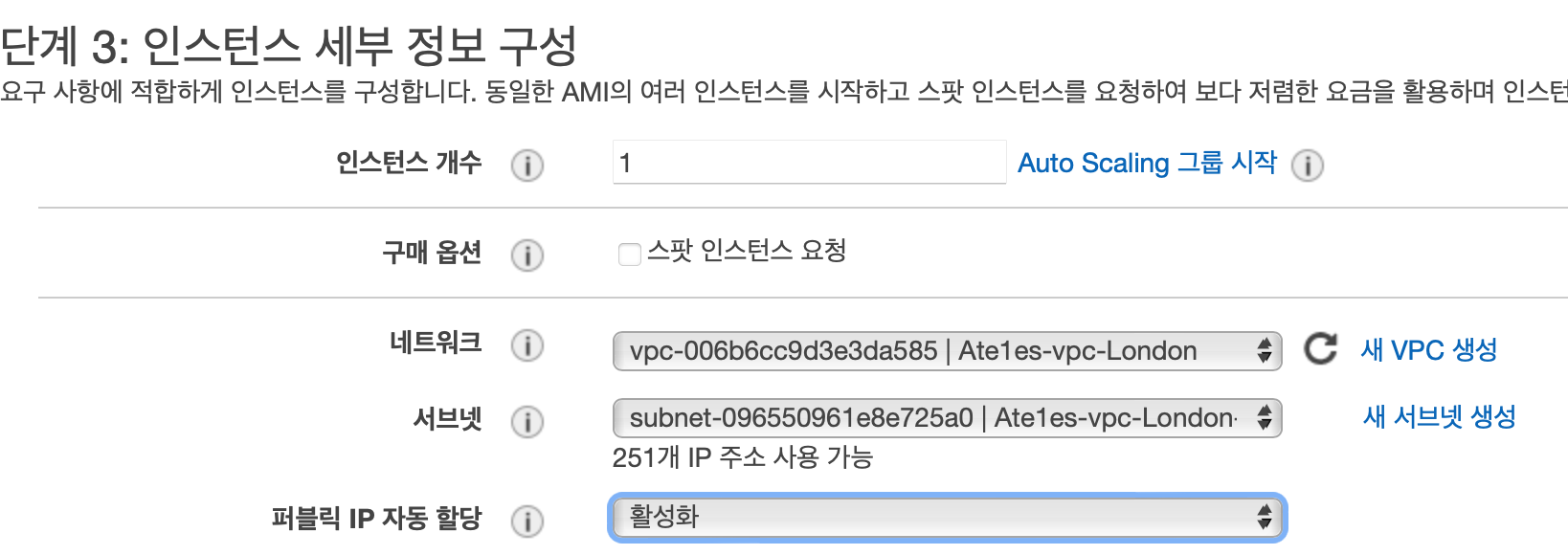 마지막 인스턴스 세부 정보 구성에서