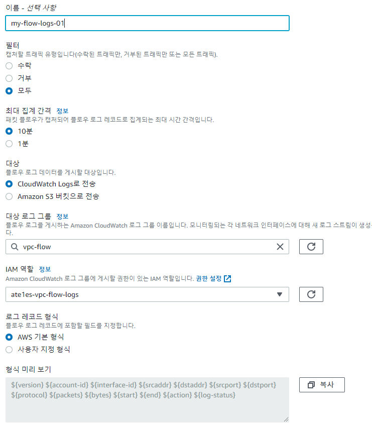 vpc 콘솔에서 [플로우 로그 생성] 클릭