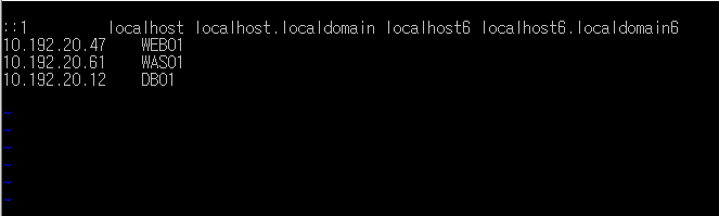 만약 현재 인프라에서 웹서버가 1개 더 추가된다면, 해당 IP를 /etc/hosts 에 WEB02로 매핑한다음