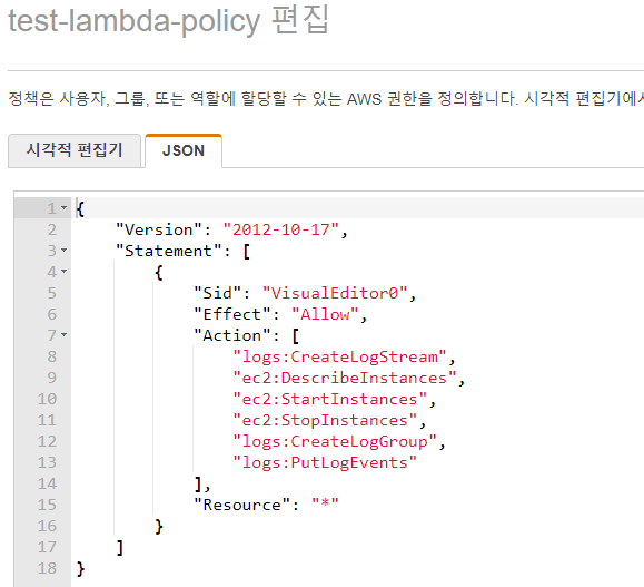 트리거가 발생되면 해당 코드로 ec2 리소스를 불러와 컨트롤 하는 코드이다.