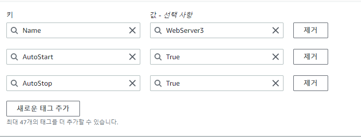 3, 4번 서버에 AutoStart, AutoStop 태그 걸어준다.